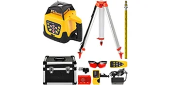 • 【360-DEGREE & 500M SCANNING】 – The outdoor laser level provides a 360-degree scanning with clear, bright, and stable lines. Used with the laser detector, the rotary laser level’s measuring range will reach 500 m in diameter. It also comes with laser glasses to easily see the laser in strong sunlight.